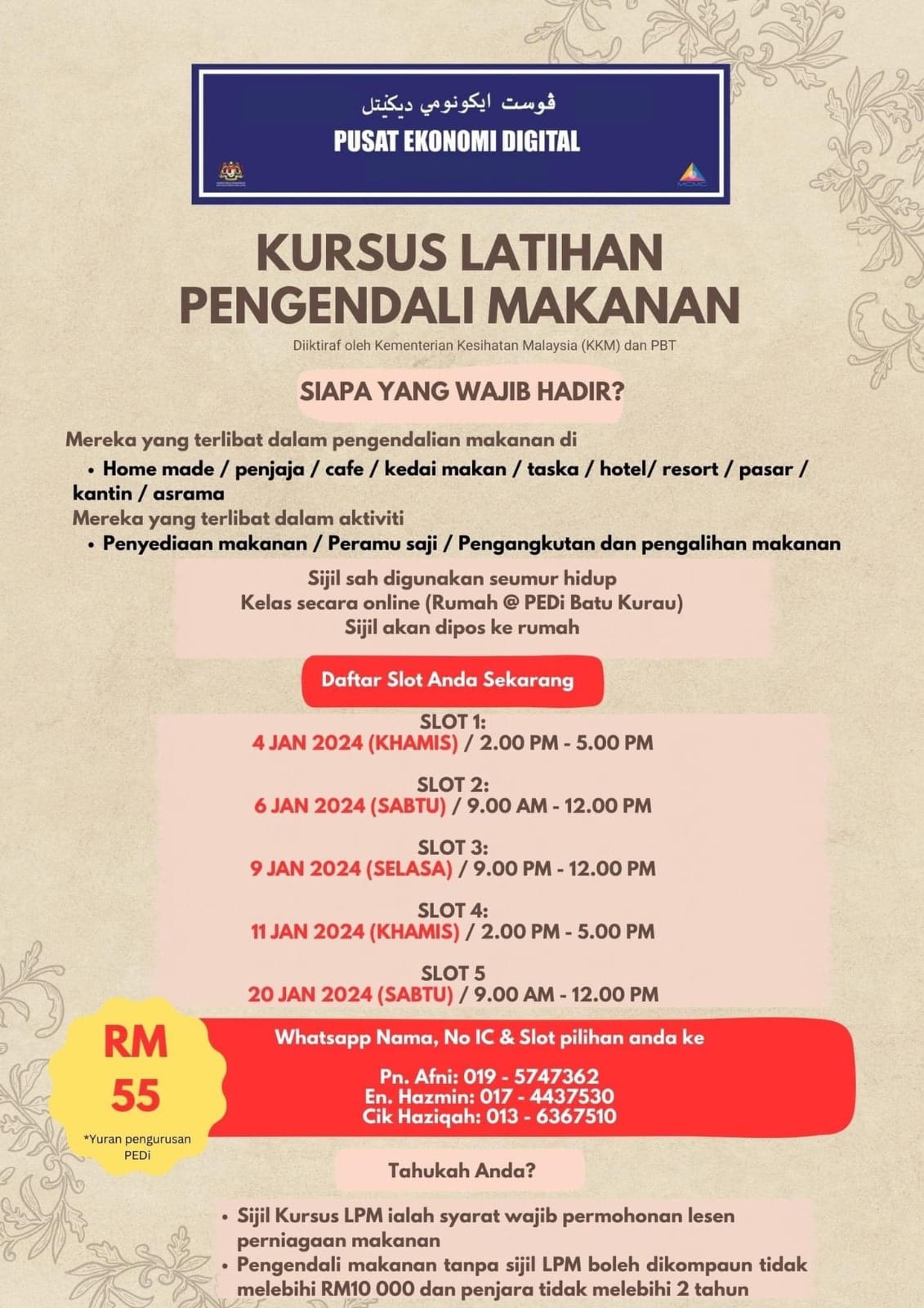 KURSUS PENGENDALIAN MAKANAN 4 JANUARI 2024