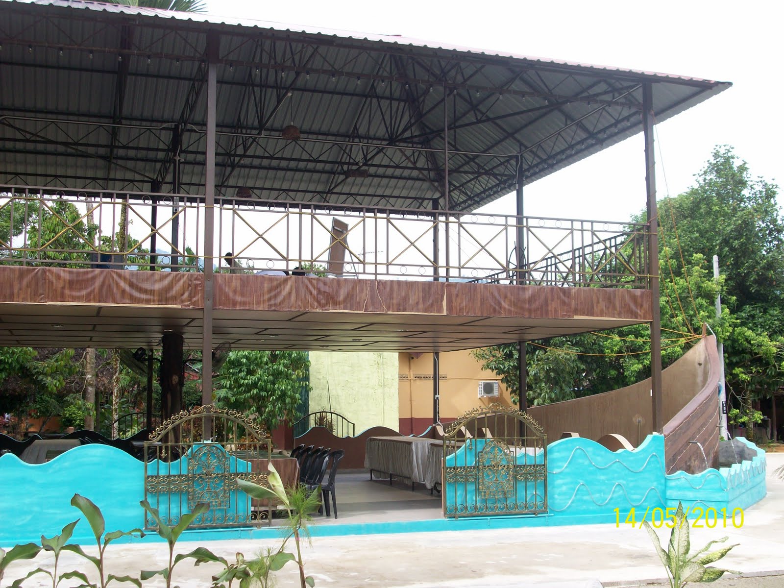 Pemandangan dewan makan dari luar, mengambil konsep kapal atau bahtera